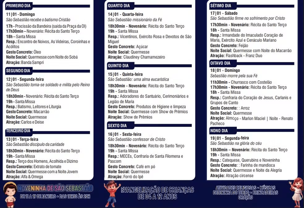 A tradicional Festa de São Sebastião chega à sua 76ª edição e começa nesta sexta-feira (09), no bairro Monte Carlo, em Campo Grande.